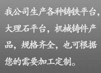 鑄鐵平臺(tái)可以用于檢驗(yàn)機(jī)械零件平面度、平行度、直線度等形位公差的測(cè)量基準(zhǔn),也可用于精密零件的劃線和測(cè)量、實(shí)驗(yàn)、鉚焊、焊jie、基礎(chǔ)、工作臺(tái)等,鑄鐵平臺(tái)工作...